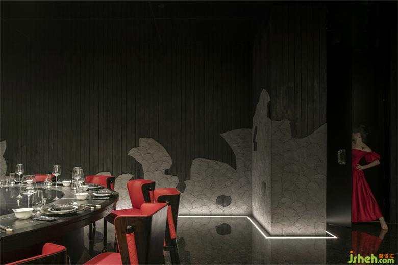 The pursuit of natural and wild interest is the main line through the project, as is the tonality of the bathroom. The main light above the lavatory area is made of brackets, which looks like a full moon. While the hanging art lights are designed in the shape of raindrops, creating an artistic atmosphere of drizzle on the empty mountain. The design team makes good use of light, shadow and materials. In the dim light, different textures of black are used to create unique scenes, where nature and art are evolved. In this way, customers can experience high-end services while enjoying the fun of nature.