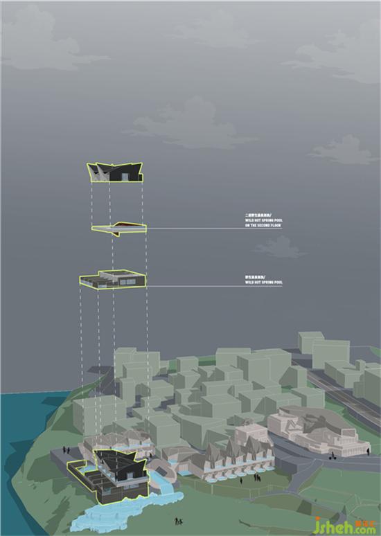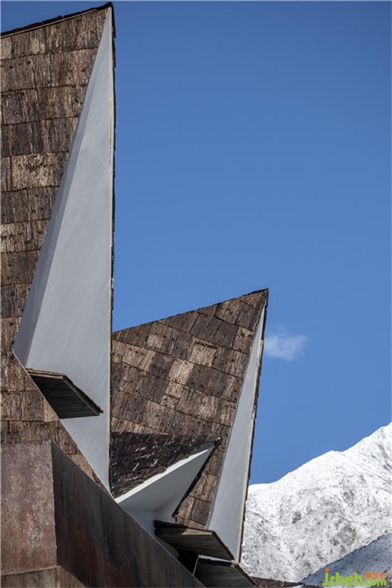 民宿二層采用了模塊式鋼結(jié)構(gòu)加蓋,曲折之間,雅拉野奢溫泉民宿設計呈現(xiàn)出極強的節(jié)奏感和韻律感,富有沖擊力的幾何線條與大山的棱角相互映襯,使得建筑兼具現(xiàn)代氣質(zhì)與自然韻味。