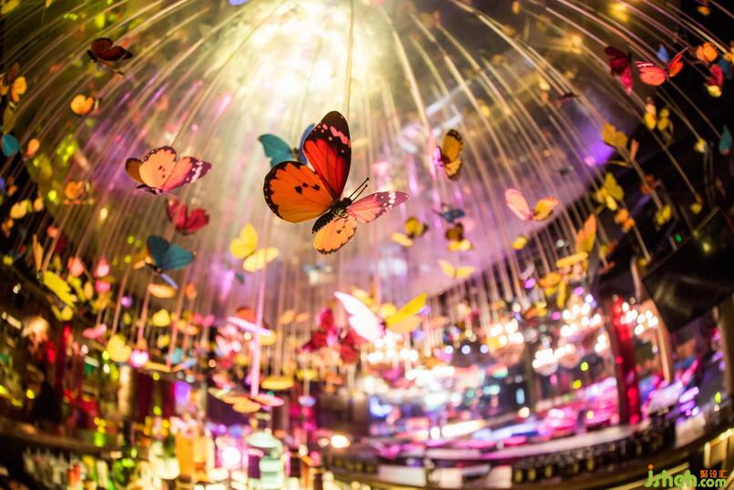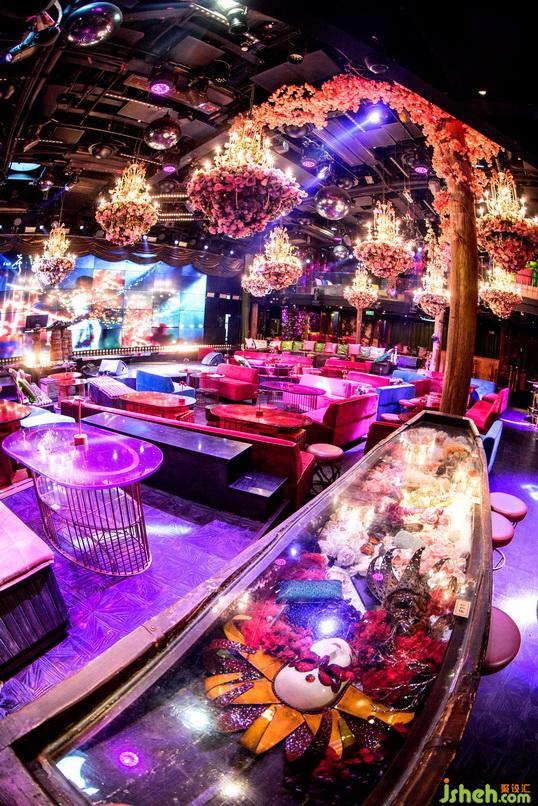 空間結(jié)構(gòu)保留納西井干式建筑風(fēng)格,開(kāi)闊空間及閣樓設(shè)置,手法古樸,輕盈飄逸??臻g內(nèi)部則取近千種花卉為原型,取花卉在東方人文中“柔美”“愛(ài)情”“浪漫”“美麗”的含義,結(jié)合光影、音樂(lè)的流動(dòng),織造出夢(mèng)幻神秘的東方夜花園。艷麗的色澤雕琢出活潑又充滿幻想的風(fēng)格,深受女性受眾的喜愛(ài)。