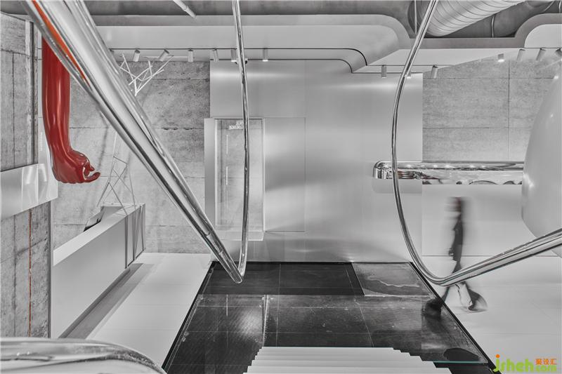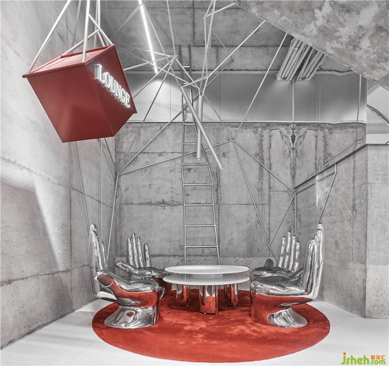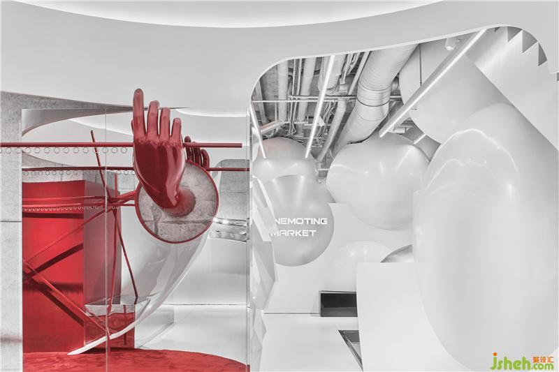 Conemoting market的空間敘述語言幾乎可以是放任的,寓言,幻覺,傷痛,童真,陷阱,曖昧,藥店,警告,科幻,撫慰,階梯,經(jīng)典,劇情,可愛,黑白,紅色和欲望都被和諧地安置在一起,580平方米的空間是一個制造“線上人間”的劇場,在這里服裝高級地成為思想的表皮,咖啡可以是弄騷的道具,那么一樓的酒吧應該是通往魔界的火箭!