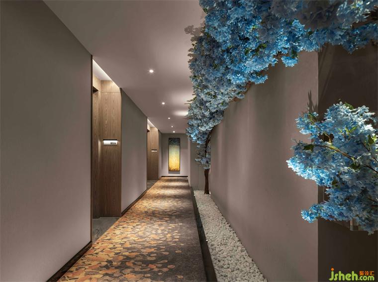設(shè)計源于自然,在走廊空間融入“花影移墻”的自然景觀,酒店設(shè)計以花為伴,形成了循序漸進(jìn)而生動幽雅的空間動線;花木有時,更得清新可愛。