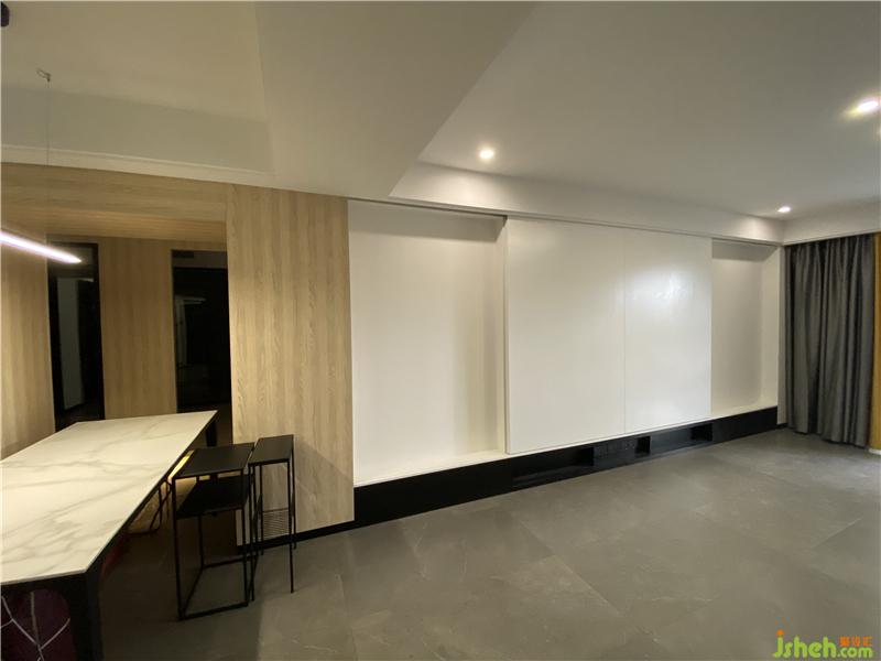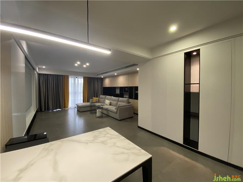 設(shè)計亮點:業(yè)主是一對即將步入婚姻殿堂的年輕夫婦對這套父母留給自己的老房子結(jié)構(gòu)和儲物能力不是很滿意,原客餐廳空間太過擁擠整體格局不順暢,光線不足。而業(yè)主對于房屋的風格喜歡現(xiàn)代風格。在做方案初期考慮這套房子是當前兩口居住的情況未來可能是幸福的三口之家,這套房子不予父母同住.于是將 原本4房兩廳的格局變成3房2廳的。原有公共空間采光都需要借用到陽臺光線照入,所以就考慮讓客餐廳的為橫向排列讓光線能直接照射到餐廳,讓整體公共空間顯得更加寬敞再加上設(shè)計上的反燈帶的做法給空間增加亮度和一些溫馨的氛圍.把其中一個臥室功能定位于接待休閑的臥室,流出一部分地方作為景觀也借此吧外界新空氣和光線引入原本昏暗無采光無通風的主衛(wèi)。整體風格就以現(xiàn)代風格為主加入些黑鈦的裝飾。當業(yè)主看到格局及功能時就對客餐廳的的格局非常滿意也是他內(nèi)心所向往的家。