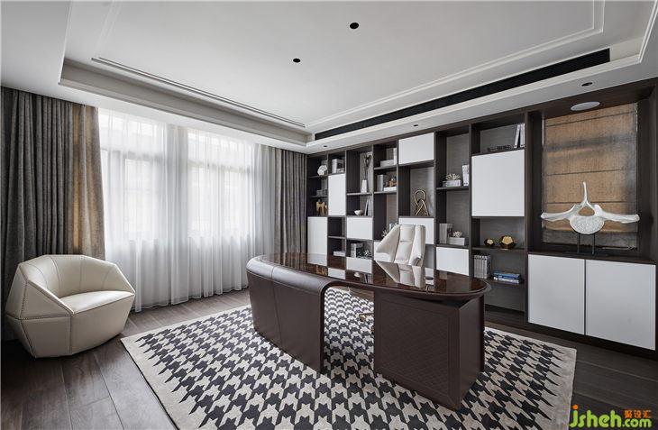 書籍與生活有著千絲萬縷的關(guān)系,在書房的設(shè)計中,書柜對話著橫豎穿插的板材,它們互相咬合,形成墻面肌理,白色和褐色二色,將高雅和厚重交相輝映在一起。