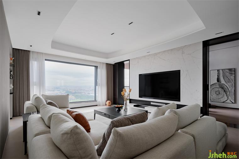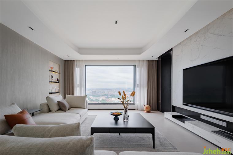 這是一個毫不吝嗇大面積玻璃窗的家居空間,天朗氣清陽光肆意,讓視線自然地渡到窗外的珠江及城市風光,同時減少光的無效反射,空間由此具備迎面而來的開闊感。天花板以白色為主,裝修公司制造光的體積,配以科學的燈光設計,恒大御景半島裝修設計讓光線的整體通透性再次提高時也不用擔心給眼睛增負。
