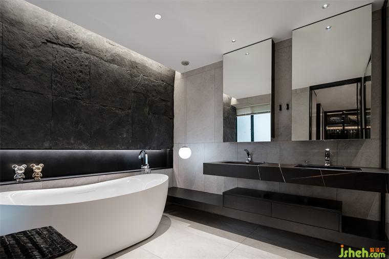 不算大的入口保證了浴室的私密和低調(diào),色調(diào)的延續(xù)性讓整個(gè)家的內(nèi)外場(chǎng)互相映照,雙槽雙鏡可滿足兩人同時(shí)使用,帶來(lái)更貼心的生活體驗(yàn)感。斧鑿面天然大理石帶來(lái)原始狂野的自然感,恒大御景半島裝修設(shè)計(jì)挖出壁龕,用于放置氛圍香薰及私人收藏,尺度感恰到好處的浴缸配以豪華江景讓屋主舒服地享受私人時(shí)光。