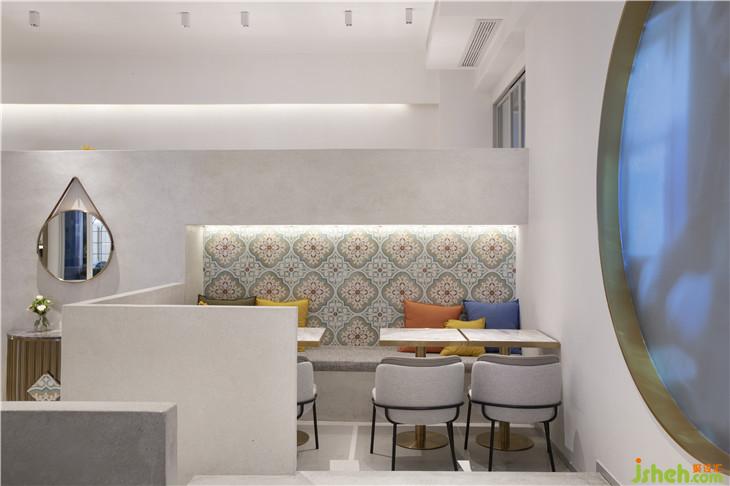 花磚和咖啡一樣,都起源于阿拉伯世界,通過海洋線路進行傳播。地中海,伊斯蘭文明里,對于馬賽克,水磨石,幾何線條,花磚的使用,是值得每一個設(shè)計師去探究的。我們在面對這個案子的時候,從空間層次上先重新構(gòu)建了一個地中海式的小城堡。區(qū)別于歐洲式的古典建筑,伊斯蘭世界的小城堡的空間立面線條更為干脆利落,也更符合現(xiàn)在的審美。而水磨石立面的完整性,細(xì)節(jié)的肌理感更能表現(xiàn)這樣的“簡約而不簡單”。