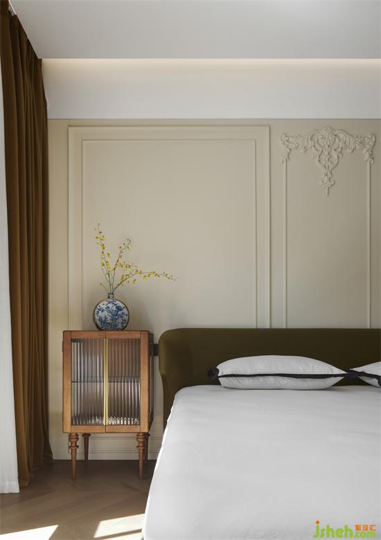 復(fù)古是致敬,亦是創(chuàng)新。在復(fù)古情結(jié)的啟發(fā)下,易昂設(shè)計重新提取早已被時間印證過的經(jīng)典元素,熟悉的符號,以現(xiàn)代的筆觸,重新去描摹。設(shè)計沒有過多的干預(yù)臥室空間,留給了靜謐的氛圍,卻又勝在韻腳。雕花石膏線以細節(jié)處的精度,四兩撥千斤,升華了整個空間的格調(diào)。