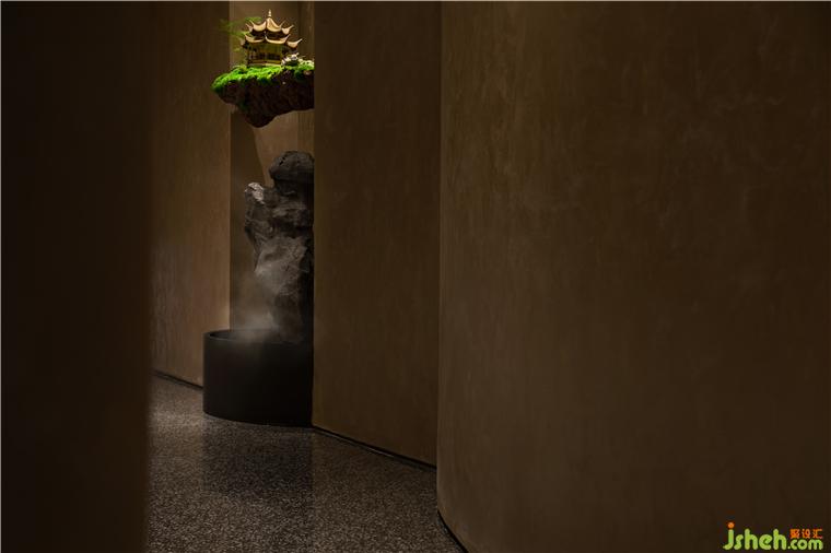 園林之趣一則是廊廡庭院的九曲連環(huán),一則是翠植怪石的奇崛清姿。CLUB設(shè)計在走廊折轉(zhuǎn)處布置山石虬枝的古典園林造景,堅韌遒勁的姿態(tài)與室內(nèi)一貫的含蓄風(fēng)格形成鮮明對比,為空間點染出藝術(shù)之魂。