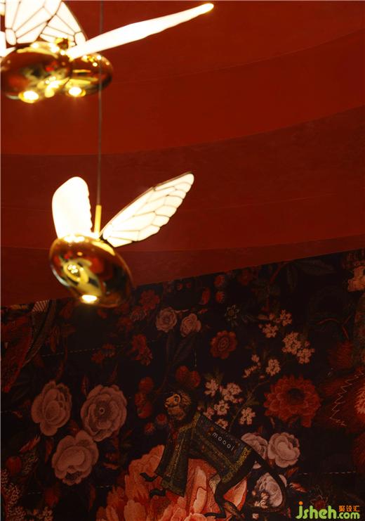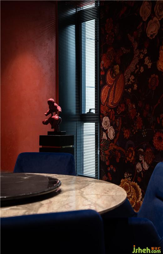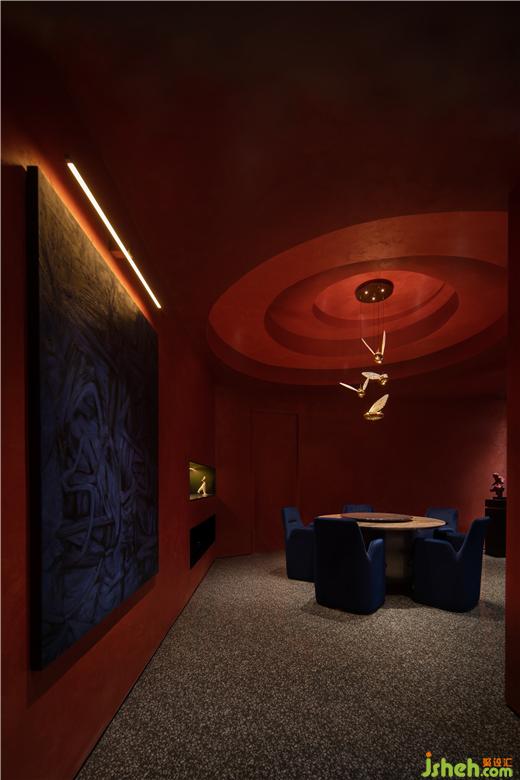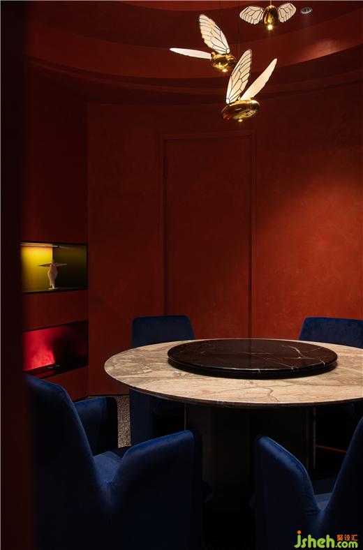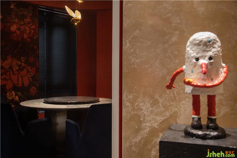 做舊墻面與新派油畫營造出歲月的滄桑與奢華,隱隱的寫意圖景如藏身于煙波中的遠山弱水,浮動的蝴蝶與雕塑擺件的參差相應(yīng)和,CLUB設(shè)計生動詮釋了藝術(shù)情懷和自然哲學(xué)的詩意。
