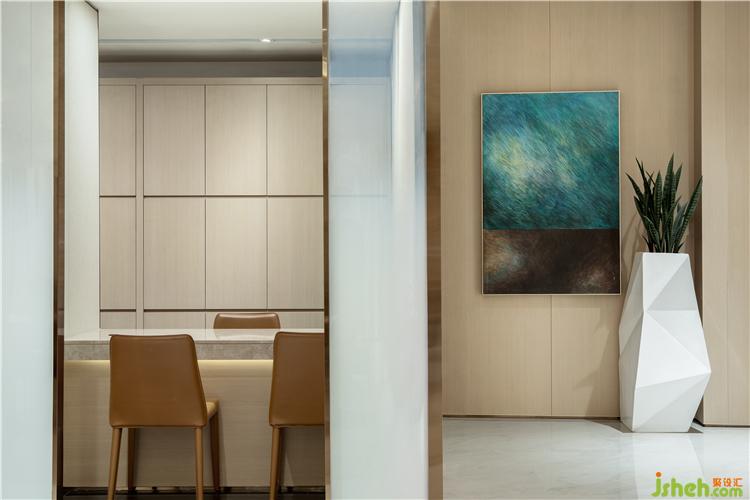 水吧區(qū)展示了現(xiàn)代都市的時尚韻味,通過明與暗、透與半透的巧妙疊加,空間呈現(xiàn)出具有感染力的磁場,顏色的層次交錯,進一步凸顯了整體空間的節(jié)奏感,營造著精睿的品質(zhì)感。