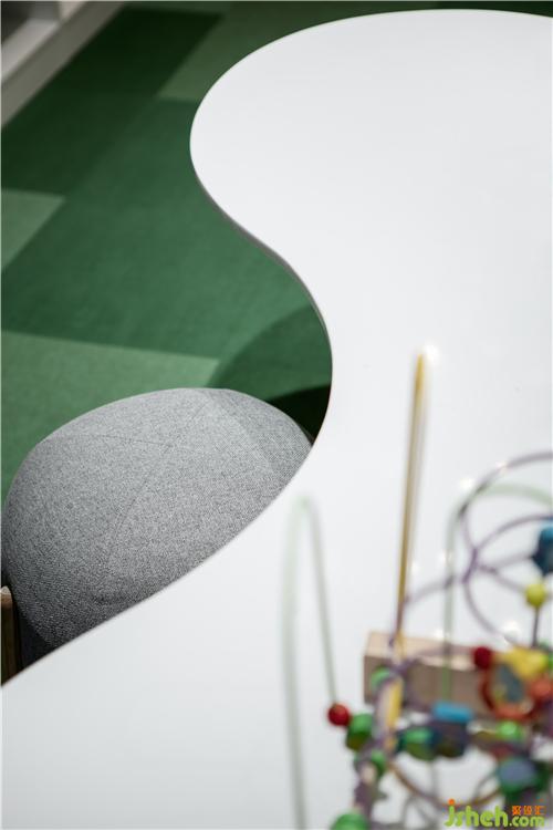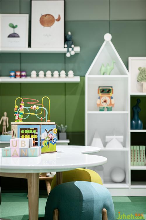 兒童娛樂空間運用了低飽和度、不同層次的綠色,以最純凈的形式、最精簡的手法,打造孩童專屬的時間、空間,閱讀、益智、折紙、畫畫,執(zhí)夢于生活之上,將生活融入夢想的點滴,溫暖了時光。