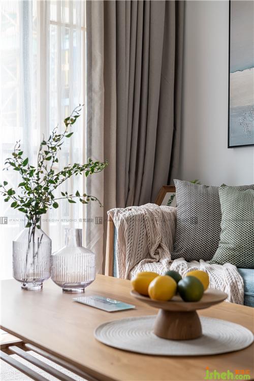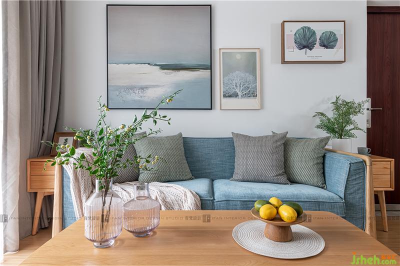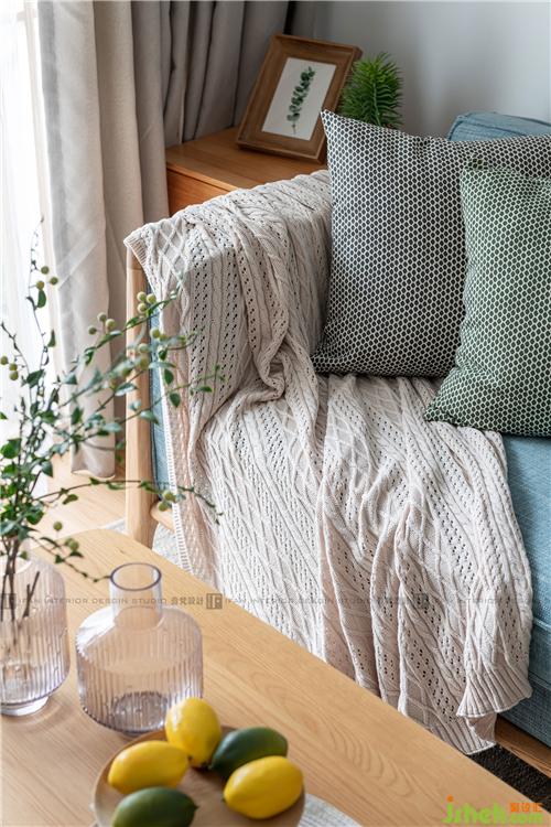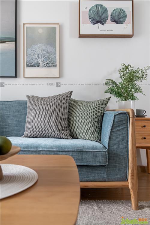 通過潔凈的白色與自然木色相結合,整體空間溫潤輕盈;布藝的藍色沙發(fā)與同色系的海浪油畫,不論從哪個角度看,都有“目光所及都是溫柔”的感受;綠油油的植物,以生命的方式存在還是繪制在布藝上,都散發(fā)著生機勃勃的氣息,讓人舒適輕松。