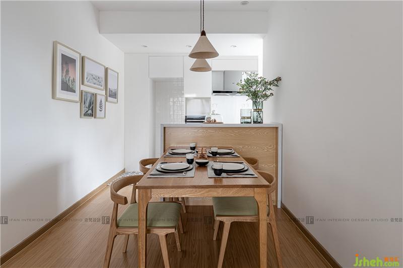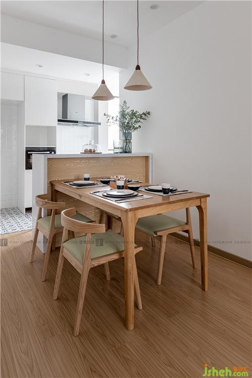 作為開放式廚房與餐廳的軟隔斷,小吧臺的設計和整體融為一體,美觀又實用。