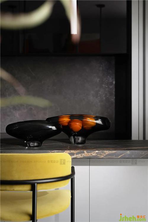 對于烹飪愛好者來說,同時擁有中西廚是一件非??鞓返氖虑?。原中廚位置設計成開放式西廚空間,與餐廳互動更緊密;島臺的設計也實現(xiàn)了自由多樣的用餐空間;