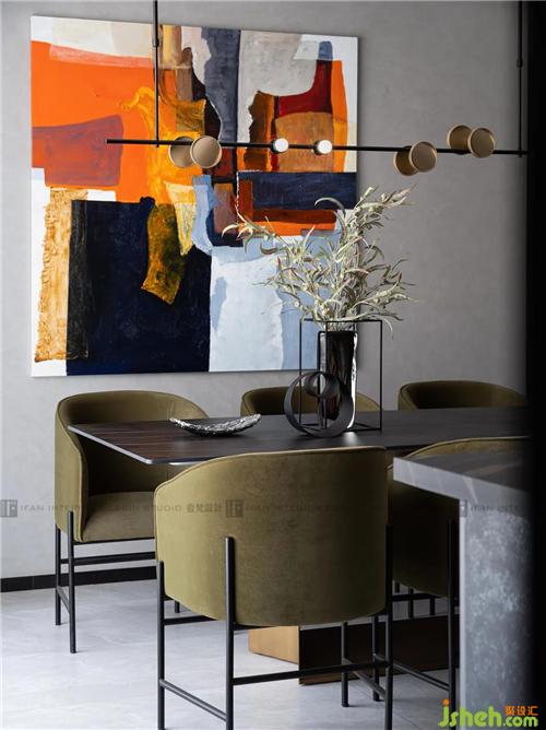 絢麗多彩的油畫如四月花海,橄欖綠的座椅如一簇一簇草叢,就這樣把春天搬進家里。