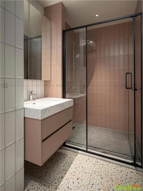女兒房的衛(wèi)生間墻壁鋪滿小而精致的粉色、白色瓷磚,淡雅又清新宜人,讓人心情變得輕快愉悅;較為磨舊的地磚不僅防滑,也迎合了淡雅又不單調(diào)的調(diào)性。