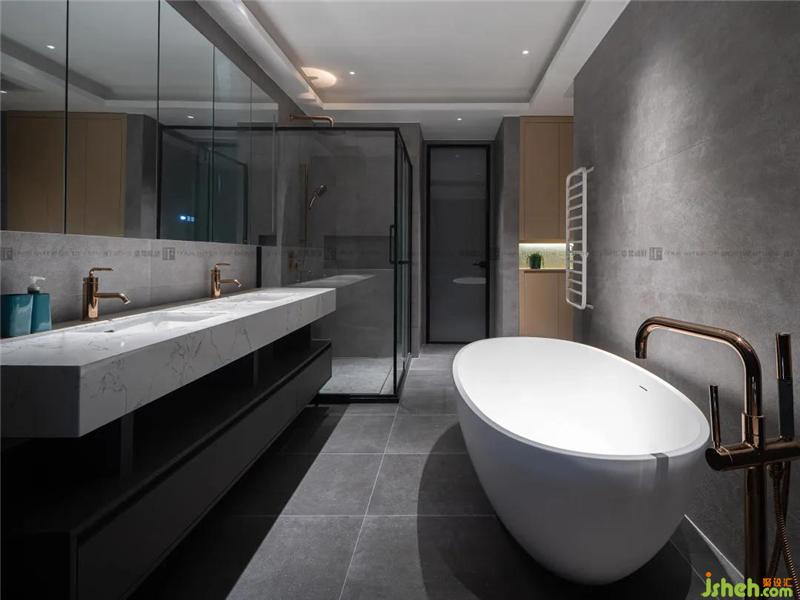 將臥室2設計成大浴室,滿足收納的同時,更是生活質(zhì)量提高的表現(xiàn)。