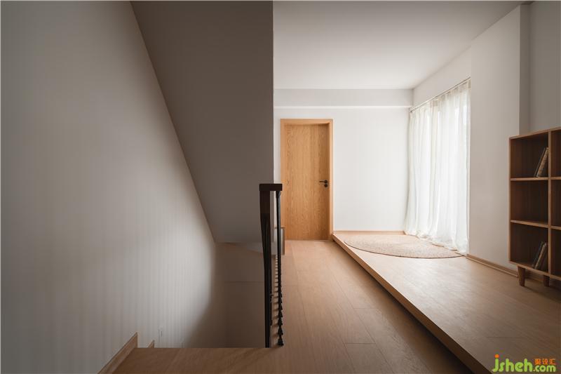 地面抬高的方式,將空間劃分出來,在這個休閑區(qū)隨處席地而坐,讀上一本有趣的書籍,風輕輕吹動著輕盈的窗簾,耳邊傳來婉轉的旋律,營造出一種輕松舒適的“度假”氛圍。