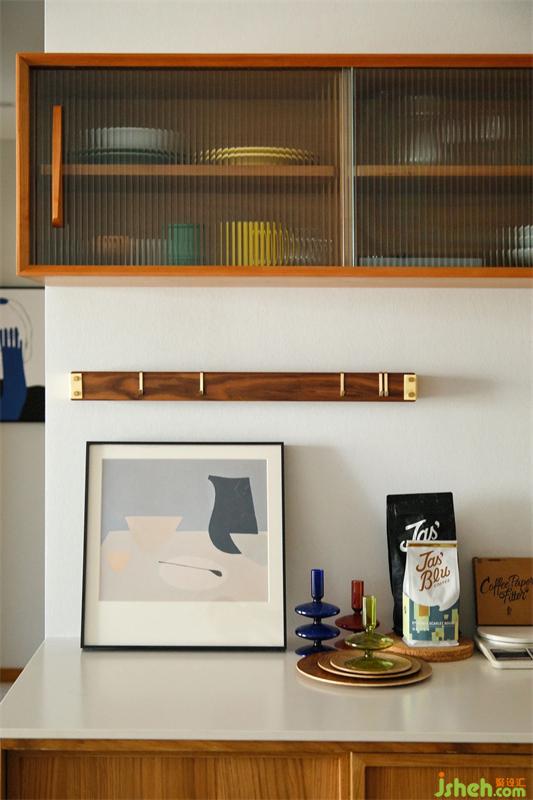 當(dāng)陽光從百葉中傾灑時,空間的光影與物件相得益彰。