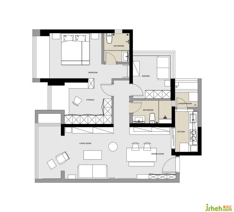 在空間形式中保留簡單的家居設(shè)計語言,從功能與形式多重出發(fā)。將光線引入室內(nèi),使室內(nèi)外更為自然的銜接。