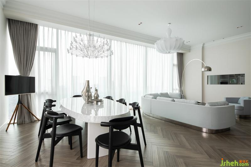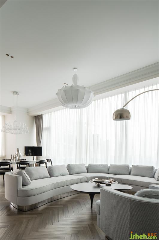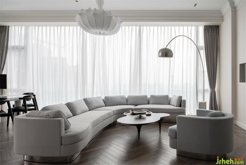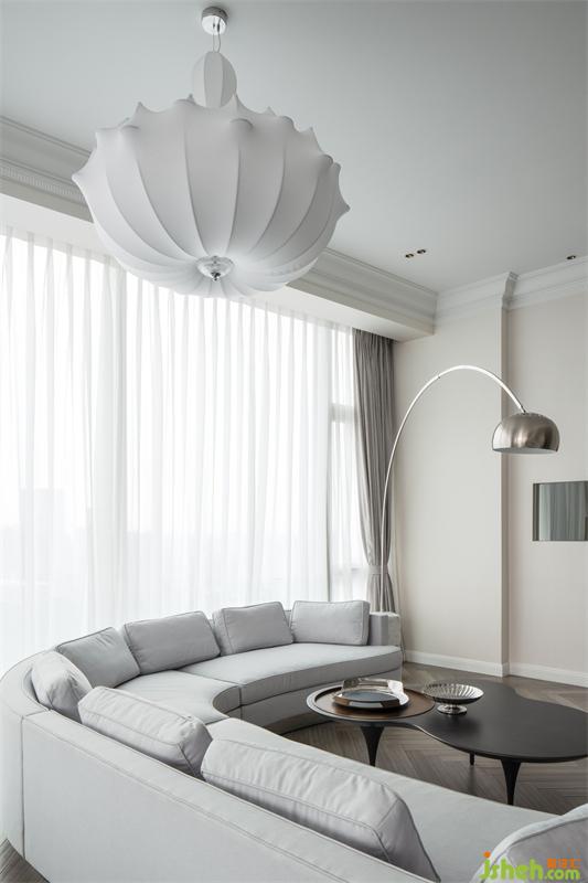 Living room space meets the needs of owner and guests, but does not lose its gentleness and elegance.
