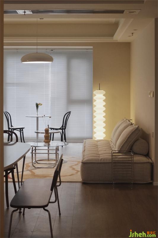 暖暖的燈光,干凈的墻體,舒適的沙發(fā),玻璃材質(zhì)的茶幾,看似沒(méi)有關(guān)系的幾個(gè)物件搭配起來(lái)卻有著豐富的視覺(jué)與觸感體驗(yàn)。