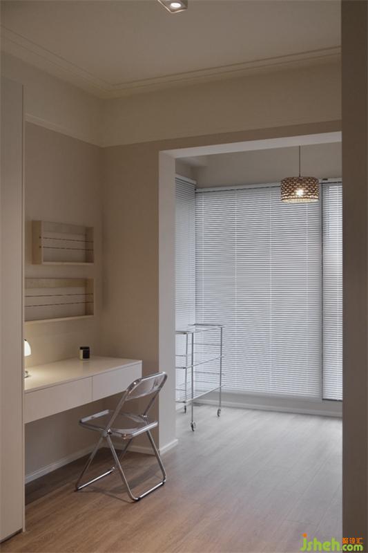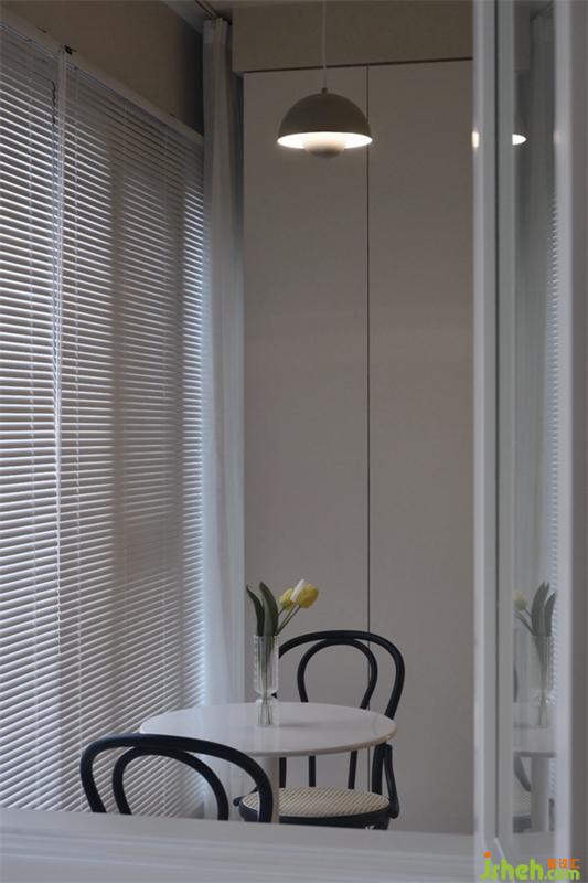 簡(jiǎn)潔干凈的書房里面藏有一個(gè)小小的驚喜,白色的窗框?qū)⒉AО?,輕輕的將窗戶拉開(kāi)陽(yáng)臺(tái)上小景展現(xiàn)在眼前,白色圓桌上花瓶里插著一朵小花,兩把椅子隨意擺放著,別有一番意境。小小的窗戶也能讓兩個(gè)空間有了關(guān)聯(lián)。