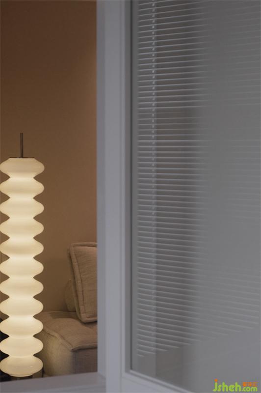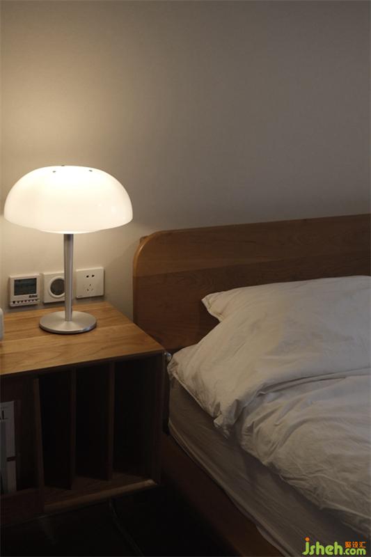 走進(jìn)臥室木制的床體和床頭柜配合低飽和度的墻體,玻璃推拉門使更衣室里的東西若隱若現(xiàn)的呈現(xiàn)出。
