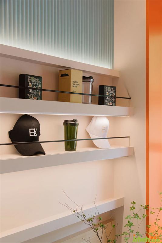 放置雜志與小餅干的層架,可由顧客隨意取放,看看書,放空自己,也給生活按下一個暫停鍵。