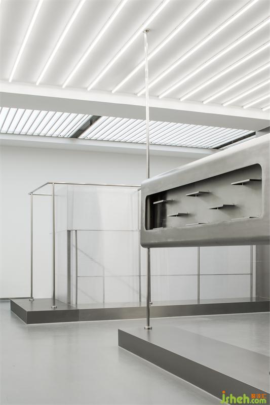 白色的空間,水泥地板,金屬質感的衣架,感受這由空間帶來的未來感。