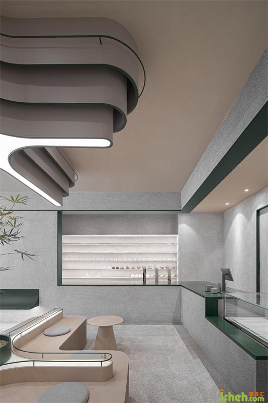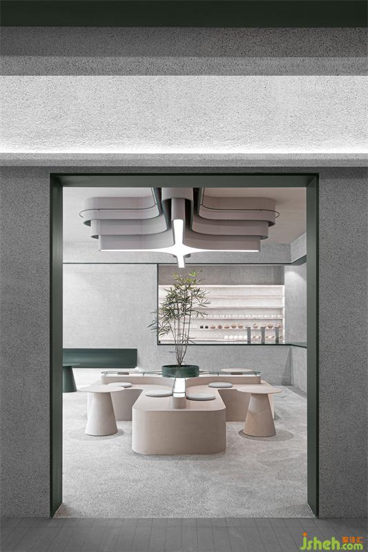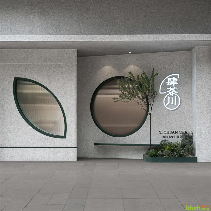 整體空間區(qū)域劃分不同,門口綠植和log的融合凸顯標(biāo)志性自然與健康的理念,門左邊玻璃的運(yùn)用使室內(nèi)通透性更強(qiáng),展示傳播產(chǎn)品制作過程,吸引路人。進(jìn)門右邊拍照打卡區(qū)不影響客人品茶聊天,左邊產(chǎn)品出品區(qū)客人隨時(shí)可觀看產(chǎn)品出品流程,也可品茶看窗外風(fēng)景
