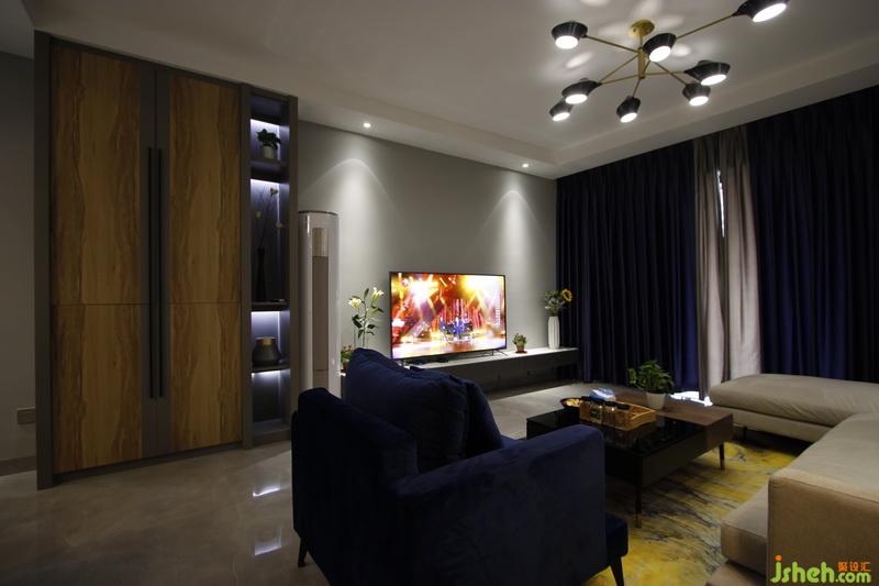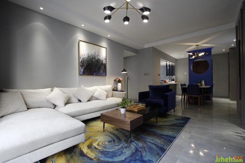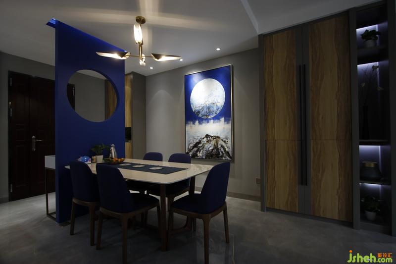 室內(nèi)設(shè)計(jì)師設(shè)計(jì)軟裝搭配同樣以灰藍(lán)作為主色系,而由于材質(zhì)的不同,給使用者帶來(lái)不一樣的感官體驗(yàn)。