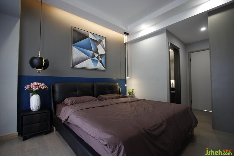 在硬裝設(shè)計(jì)上以簡(jiǎn)潔的面、室內(nèi)設(shè)計(jì)師以大色塊作為主要手法,強(qiáng)調(diào)整體感,舍棄不必要的裝飾性元素。運(yùn)用大面積灰色作為主色調(diào)并以藍(lán)色為點(diǎn)綴,凸顯沉穩(wěn)、寧?kù)o的空間氛圍。