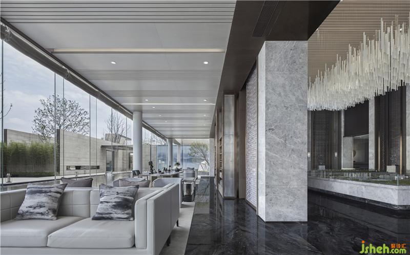 只憑單線條的勾勒,就散發(fā)出攝人心魄的力量,從吧臺到沙發(fā)區(qū),視覺區(qū)域內(nèi)各種優(yōu)質(zhì)材質(zhì)的運用——大理石、金屬、布藝軟包、陶瓷、玻璃,釋放組合的魅力,在整體上以謙卑的方式作收斂,淡然的空間更能包容內(nèi)容的喜憂。