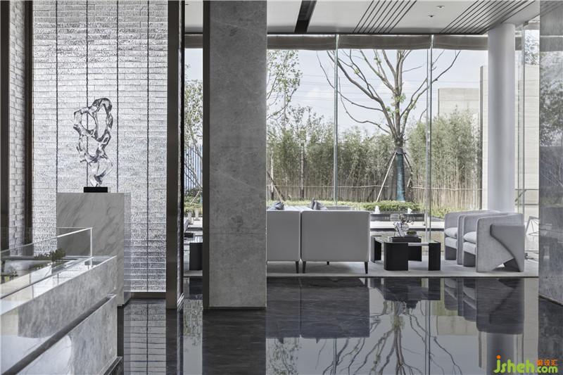 尊重每一次交流,享受每一段思考 —— VIP洽談區(qū)位于沙盤區(qū)的左側(cè),以灰白色為主色調(diào),鋪陳近似水墨山水的東方基調(diào),細(xì)膩地呈現(xiàn)出一個優(yōu)雅、寧靜的空間,同時自然地與窗外的水景相交融,影影綽綽的光感,更讓空間靈動起來,孕育了無形的生命力。