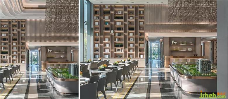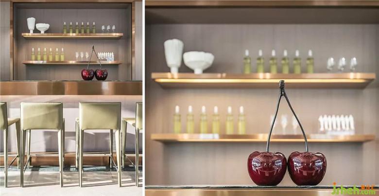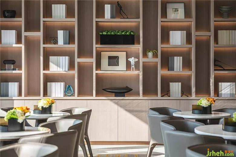 會所設計作為功能性的水吧區(qū),則打破空間的單調(diào),展示架上收納不同器皿和裝飾物,不僅豐富了洽談區(qū),亦有叫人飲水思源之意。以清新的木材書架與理石墻面構設背景,綠植、酒具、各色趣致工藝小品擺放其上,幽幽地散發(fā)著安然簡雅的氣息;充滿趣味性的藝術擺件,碰撞出大膽而極具活力的藝術個性。與整體設計自然地融合為一體,空間氣質(zhì)低調(diào)簡凈,給予人們片刻舒愜自在的享受。