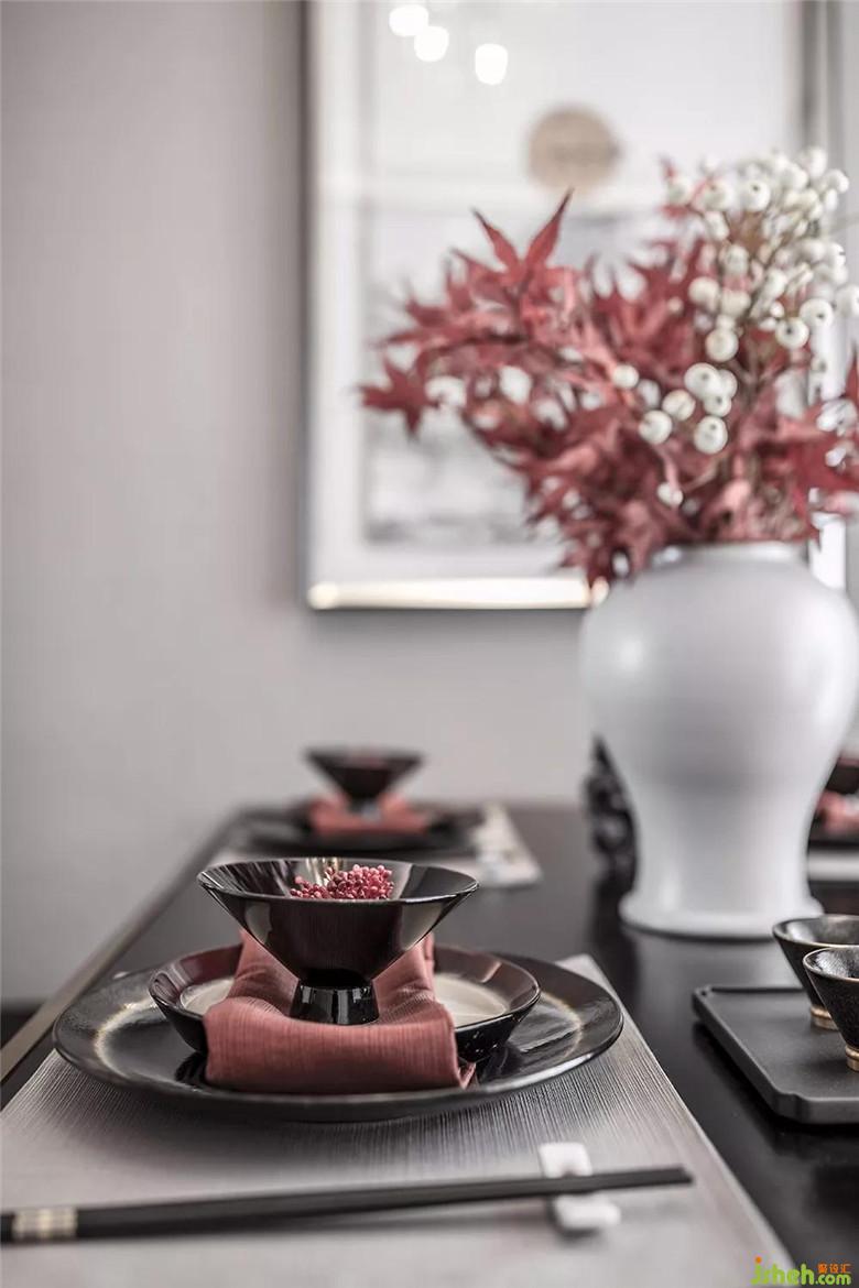 利用中國(guó)紅、黑色木紋,營(yíng)造出歷史悠遠(yuǎn)的中國(guó)文化底蘊(yùn),餐具呈現(xiàn)出的飲食講究,讓人好不愜意