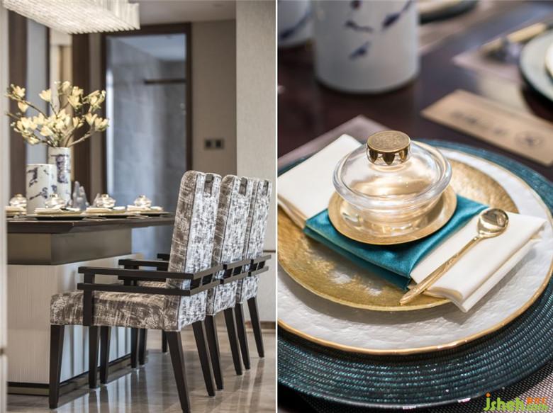 餐廳搭配水晶的山景造型,將山水月色融于一室之內(nèi),一抹恬淡寡欲的東方藝術(shù)氣息。