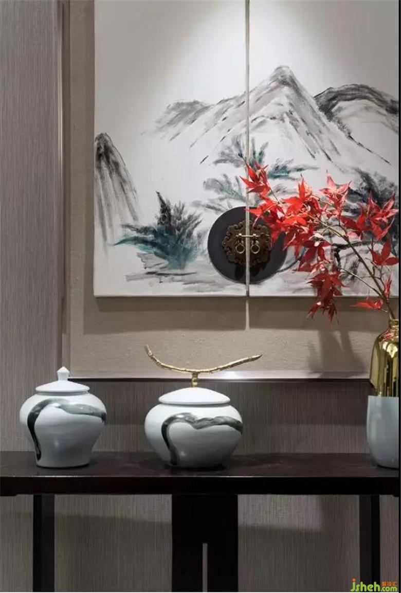 玄關(guān),進(jìn)出的必經(jīng)之所。簡約的擺件、裝飾畫將中國文化講究意不直敘,情不表露的“含蓄”精神在一些細(xì)部上體現(xiàn)出來。而這,也正是樣板房想要呈現(xiàn)的——內(nèi)斂大氣。