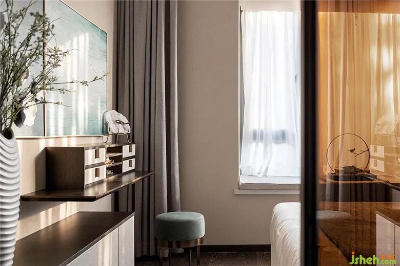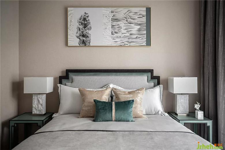 主臥選用淺杏色為背景主調(diào),在木質(zhì)、軟包材料的拼接下,加入品綠色點(diǎn)綴,畫(huà)幅魚(yú)兒躍然于紙,增加了空間質(zhì)感的豐富性。