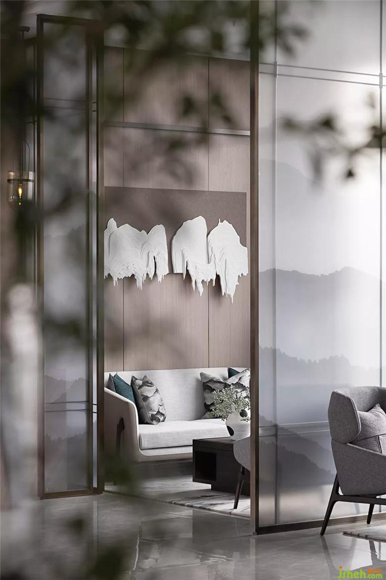 微風(fēng)細(xì)細(xì),修竹影交加,月色與流水雅澹相生,讓人恍若棲隱山林,塵囂皆濾,心歸靜寧。溫潤(rùn)光澤的玉馬雕塑,仿若時(shí)刻靜觀霧隱竹林,白色的基底上暈染開(kāi)的黛色,一灰一白簡(jiǎn)單的色彩對(duì)比,使空間格局顯得愈加純粹與強(qiáng)烈。屏風(fēng)的靈動(dòng)感,出眾而不張揚(yáng),它重新定義了神秘的東方氣韻。