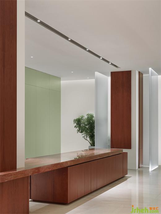 木質(zhì)的溫潤,金屬的奢雅,洞石的濃烈,以遞進的色彩營造包裹氛圍,加深空間的情緒感染,打造“入室”的序章儀式。