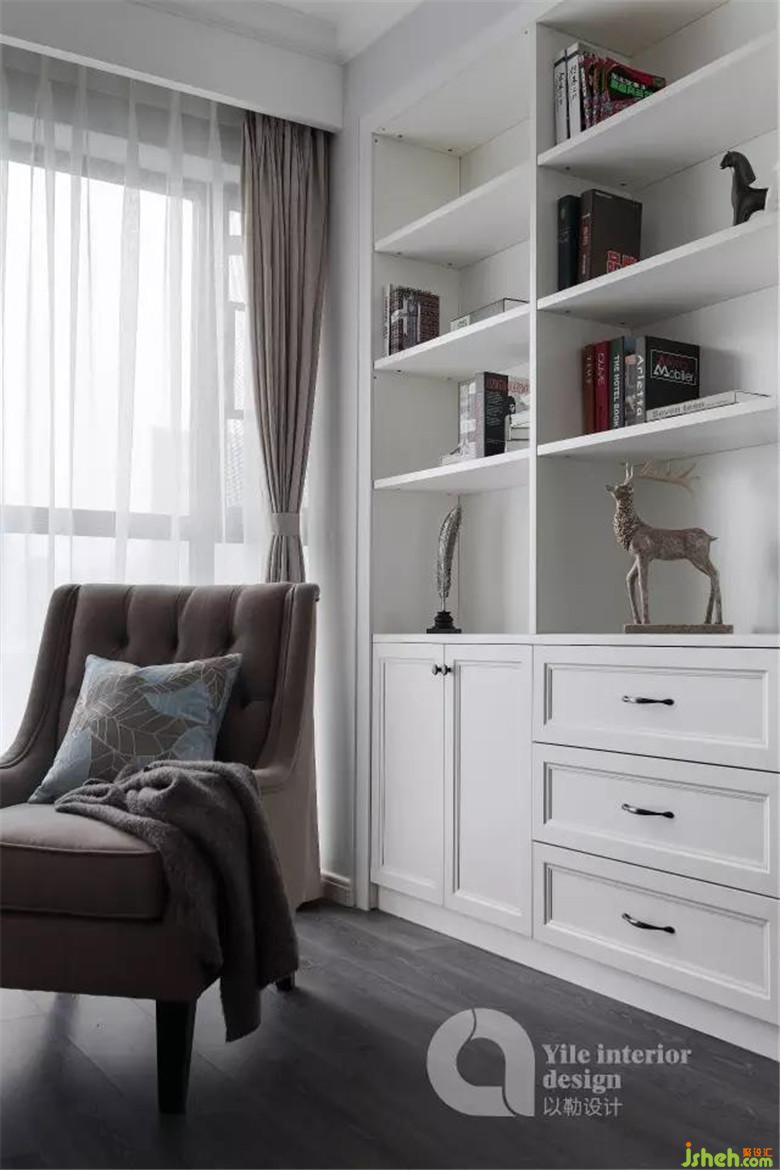 書房一入眼就是白色的柜子,室內(nèi)設(shè)計師搭配暗灰色的地板,感覺空靈與寧靜。