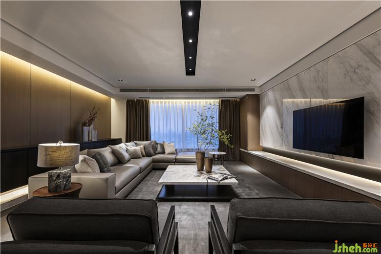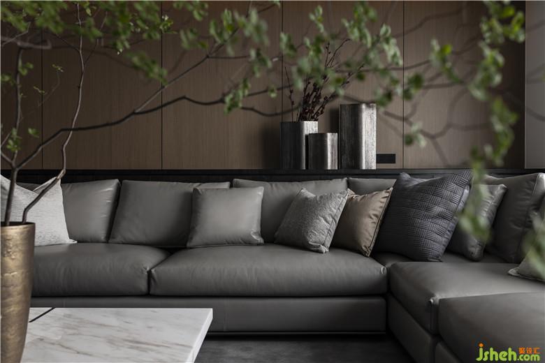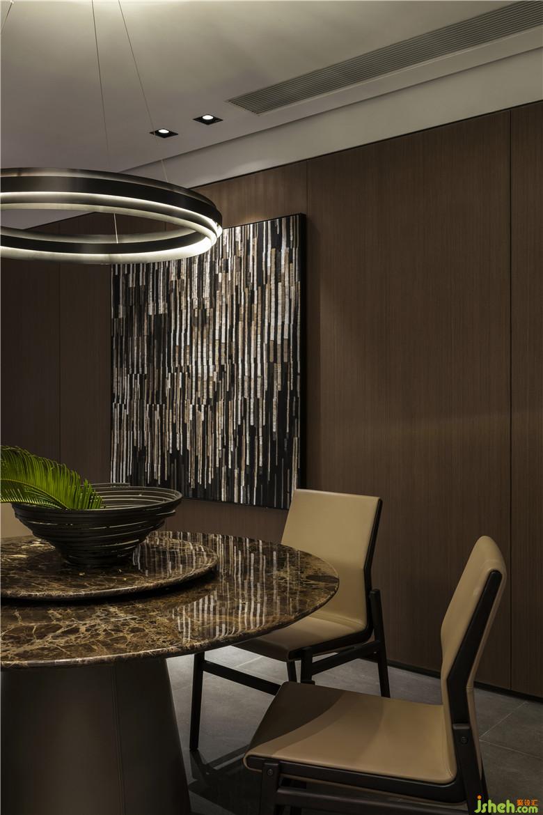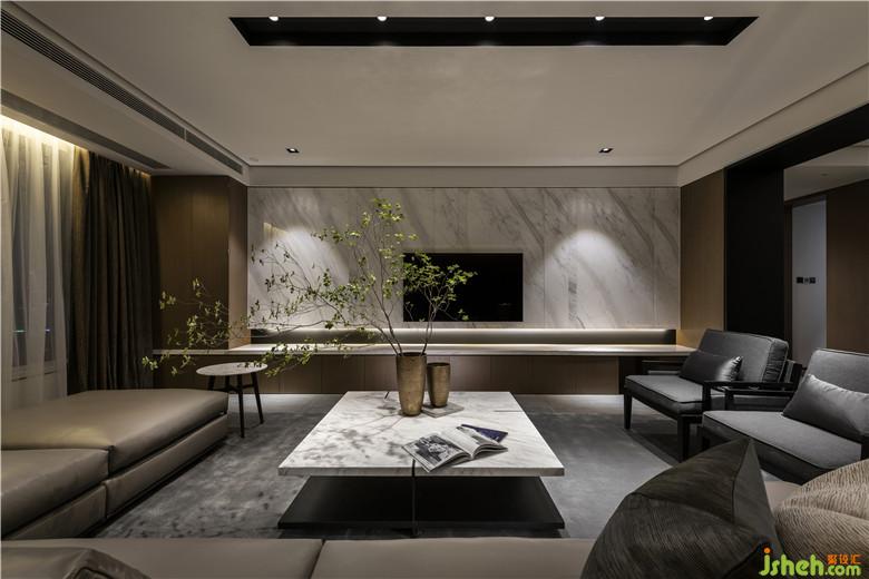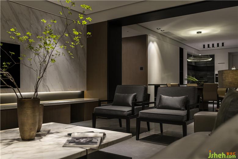 留白是中國(guó)水墨畫中獨(dú)有的一種構(gòu)圖方式,它產(chǎn)生于唐代,成熟于宋代,曾多次在著名文人墨客的作品中展現(xiàn)。在本套作品中,室內(nèi)設(shè)計(jì)師特意將這種留白的審美方式呈現(xiàn)在空間當(dāng)中,形成留白美學(xué)。摒棄原來(lái)白墻所滯留的呆板,用大面積的石材加木飾面的組合形成留白意境,以無(wú)相表達(dá)意象。只有保持一定的空,才能其用無(wú)窮。中界其意不以界限為局限,保留一定的空白即是舍棄,而部分舍棄才能終得成全。