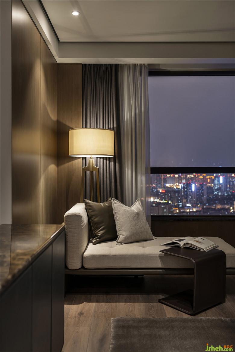 所以在這次的空間當(dāng)中,他運(yùn)用一些不太樸素的設(shè)計(jì)手法將一些可呈現(xiàn)建筑設(shè)計(jì)構(gòu)圖法的地方進(jìn)行延伸,打造層次較為明顯的錯(cuò)落感,將建筑中鏈接空間與自然的手法大膽呈現(xiàn)。當(dāng)然不止是為了滿足業(yè)主的職業(yè)屬性需求,更豐富空間層次,入而可,抻滿面。