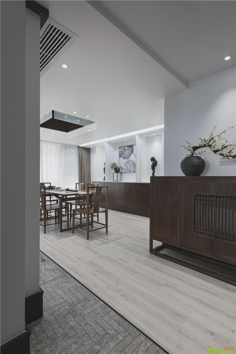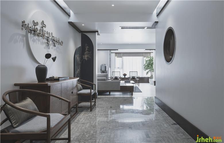 室內(nèi)設(shè)計(jì)師同時(shí)在布局上借鑒中國(guó)傳統(tǒng)四合院的建筑構(gòu)思,對(duì)現(xiàn)有的戶型進(jìn)行拆分、重組,形成“進(jìn)式”院落。造型整體以徽派建筑為載體,一樓從宅門(mén)進(jìn)入,入眼便是影壁,中為庭,庭四周環(huán)繞分布著外院、內(nèi)堂及廂房。