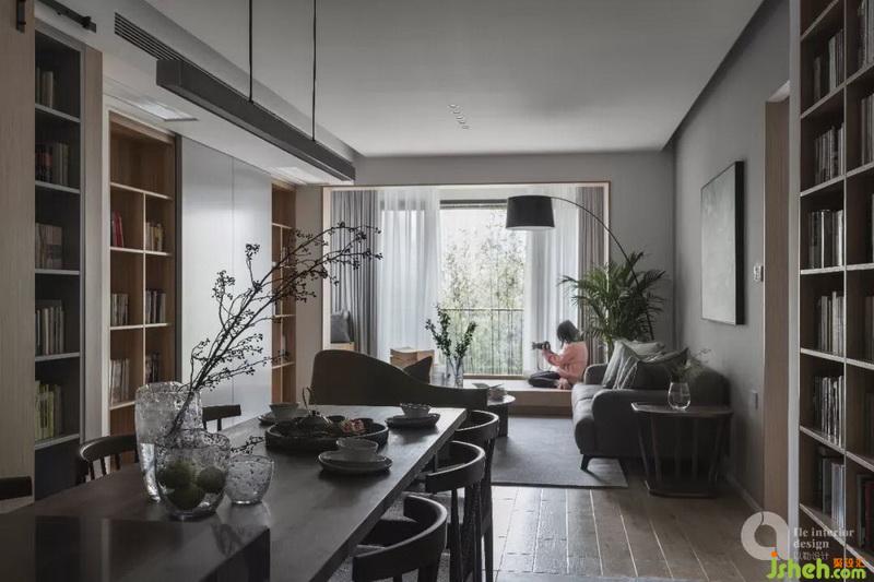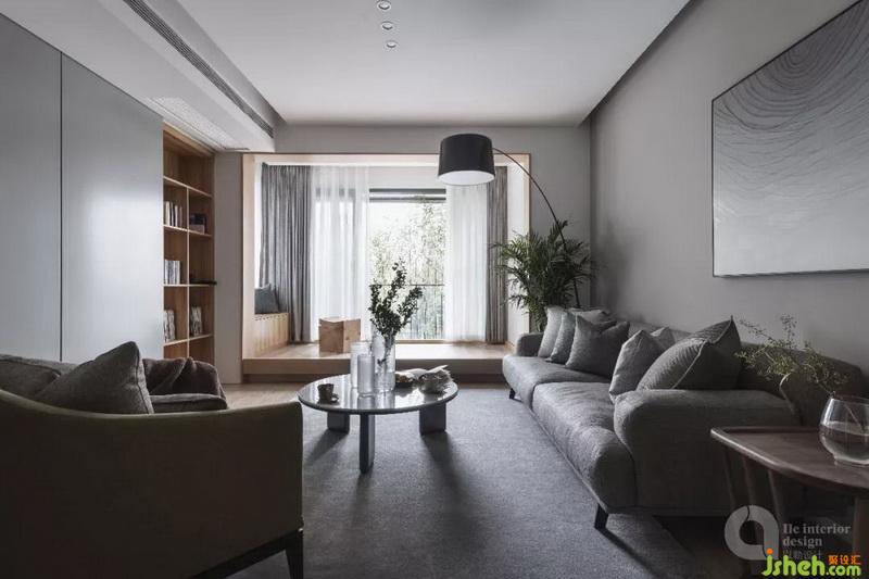 設(shè)計亦是如此,在想表達(dá)園林之意的時候特意選取了含蓄的手法,所以我們將客廳的陽臺特意往里縮小了一圈,并在陽臺窗戶外圍種上一片竹林,由窗戶將竹林景象盡收屋內(nèi),但卻不能直接與之接觸,猶如窗外便是一片諱莫如深的竹林一般。