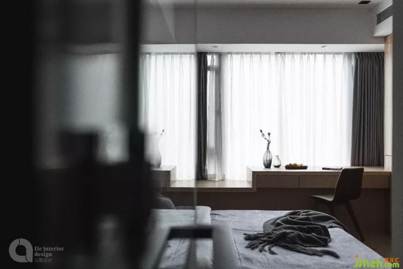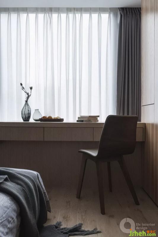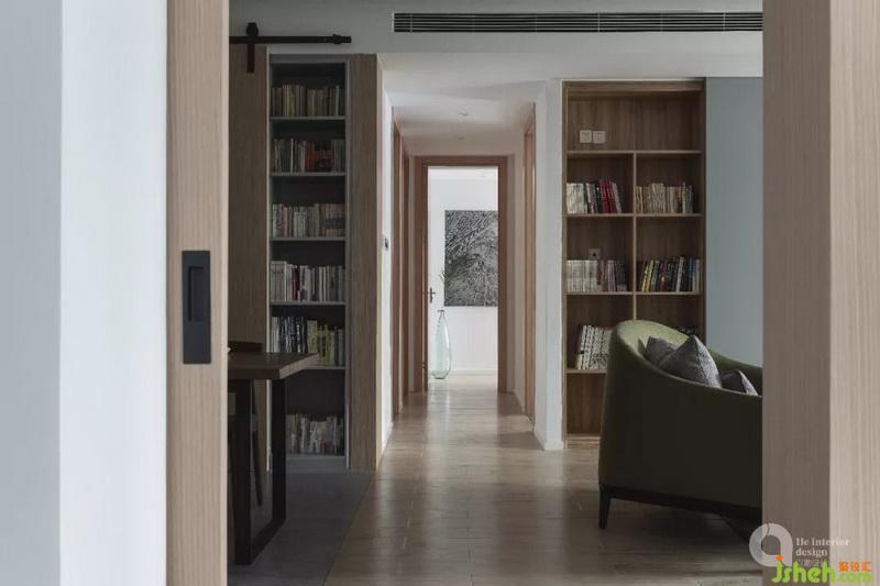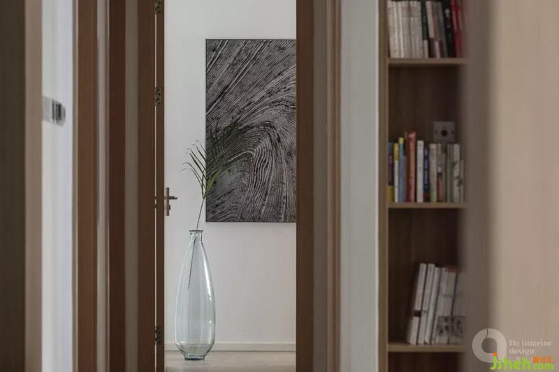 不管是書架還是門頭,幾乎能用到木制品的地方都運(yùn)用了,除此之外臥室的床也是取木材并專門設(shè)計(jì),最后現(xiàn)場直接加工制造完成。這樣以來,生活中的物什和木制品相互映襯,相互妥協(xié),似將生活中的瑣碎交還與大自然中,只得悠然見南山的心境。