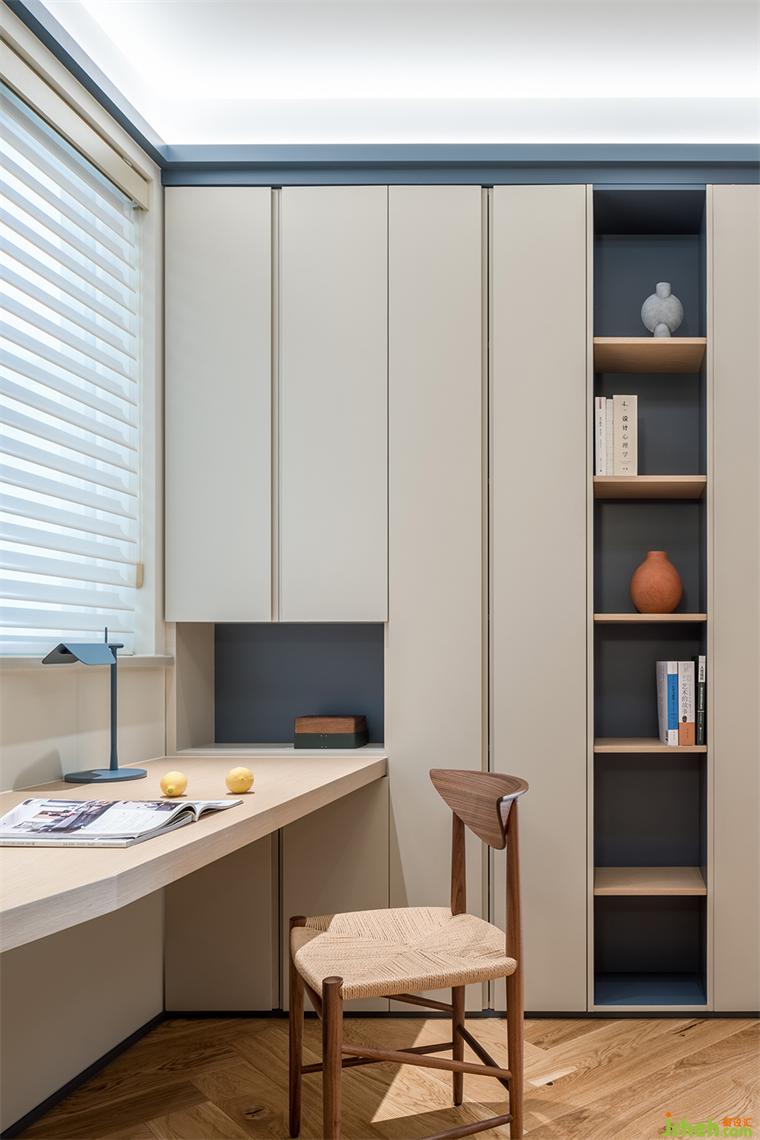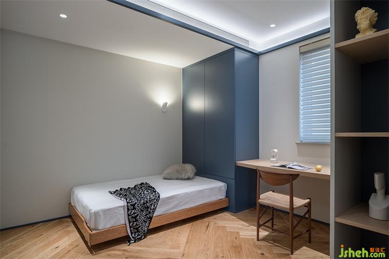 女兒房局部使用了女兒喜歡的霧霾藍(lán)色點(diǎn)綴,增添一抹活潑感,同時(shí)也豐富了整體空間的層次。