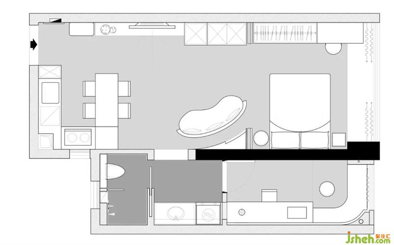 2、客餐廳一體化設(shè)計(jì),動(dòng)線更合理,視野更開闊;